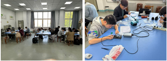 “智能+”赛道-智能物流搬运赛项校内选拔赛于10月16日在工程训练中心电工电子技术实训部举行,本次校内选拔赛按照正式要求进行,根据成绩推荐参加省赛的队伍。通过此次校内选拔赛,各队能充分认识自己作品的不足,同时也能感觉到与其他高校作品仍存在差距,为后续参赛提供技术、方案参考。他们将针对此次比赛中暴露的问题,进行技术攻关和方案优化,不断提升作品的质量和竞争力。同时,也会积极借鉴其他高校的先进经验,取长补短,为在省赛中取得优异成绩奠定基础。