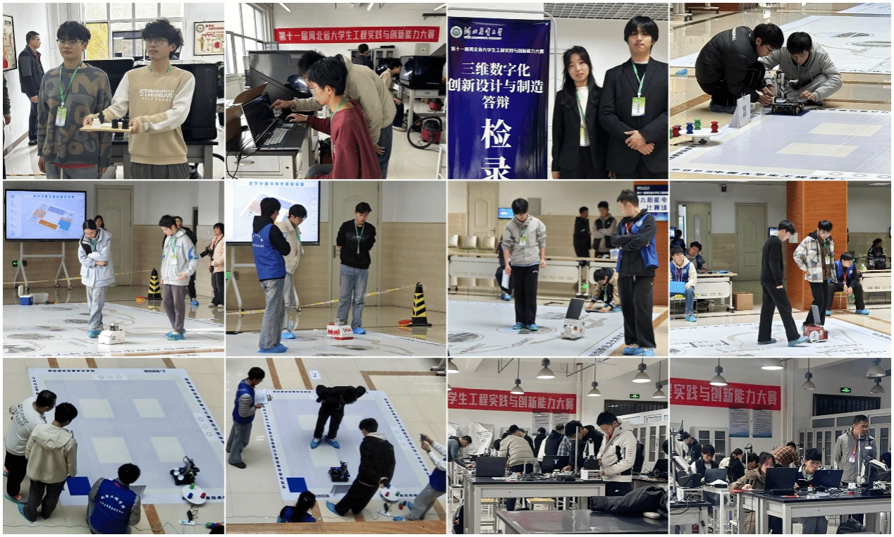 本届大赛以“交叉融合工程创新育新质,立德树人强国建设勇担当”为主题,共设“新能源车”、“智能+”、“数智技术应用”三大赛道,涵盖太阳能电动车、温差电动车、智能物流搬运、工业视觉系统智能分拣、三维数字化创新设计与制造等五个赛项。全省共有包括河北工程大学、华北电力大学(保定)、河北工业大学、河北农业大学等在内的25所高校报名参赛,累计组建队伍超过195支,竞争激烈,竞赛全面考察学生在创新设计、工艺制造、流程优化及团队协作等方面的综合素养。在为期三天的赛程中,各赛道分阶段开展了初赛、决赛及答辩、社区加工等环节。我校参赛选手在指导教师团队的悉心指导下,沉着应战、团结协作,在方案设计现场运行、社区操作、技术答辩等各环节中均展现出良好的专业素养与创新意识,赢得了评委的广泛认可。