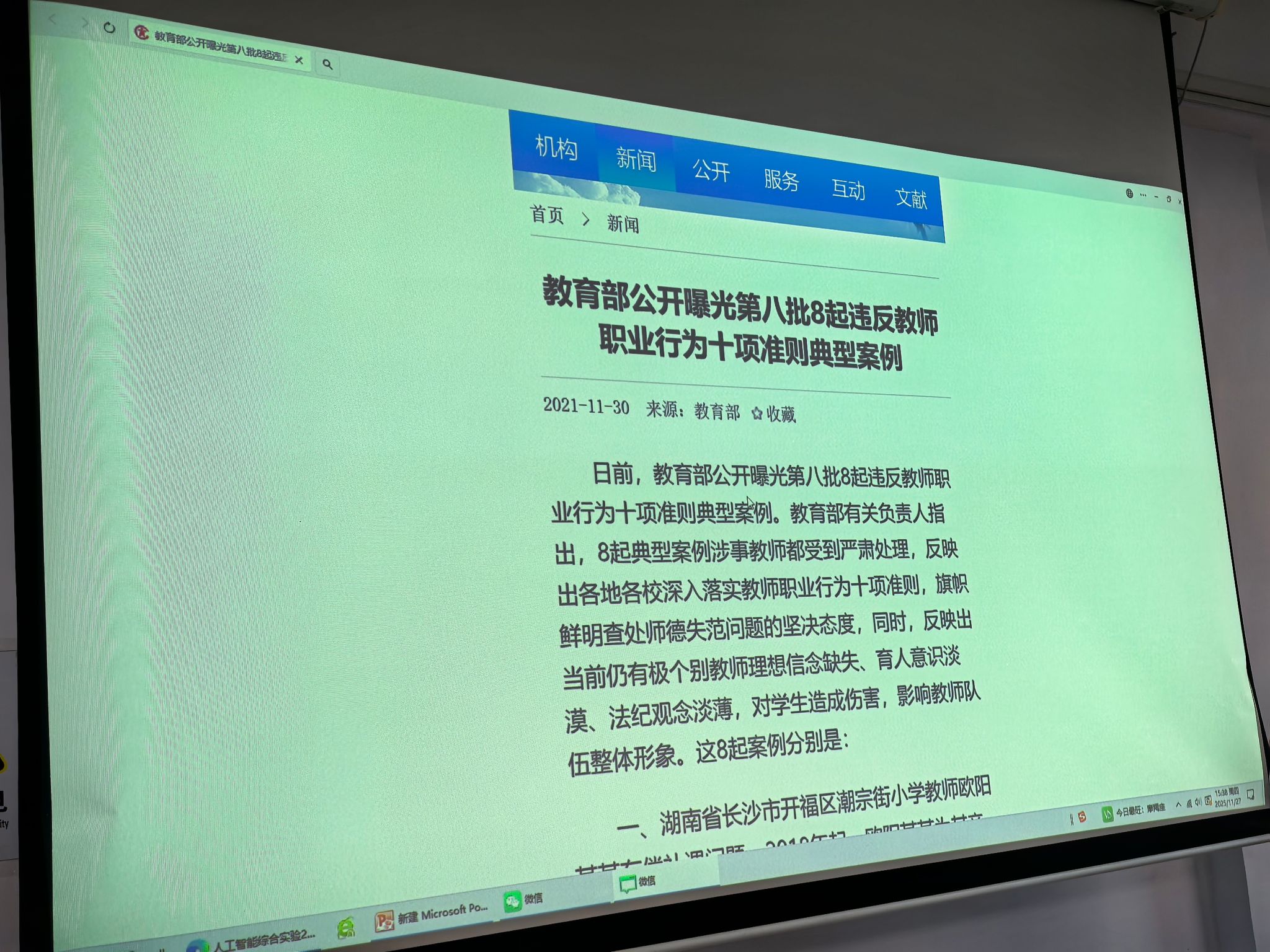 首先,部门组织中心全体教师集中观看教育部公开曝光的违反教师职业行为十项准则典型案例,进行警示教育。这些案例就像一记记沉重的警钟,在教育的天空中长鸣,让每一位教师深刻反思了违反教师职业道德行为的严重性与危害性,对此有了更为深刻的认识和体会。