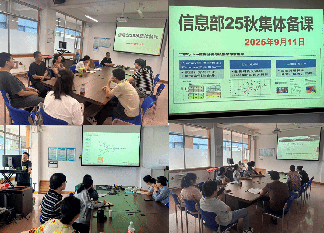 集体备课为教师们提供了一个交流和学习的平台,旨在通过集体备课的形式,不断打磨教学内容,整合优质教学资源,进一步提升课程教学质量,确保为2025级理工新生呈现优质的人工智能通识实训课程。
