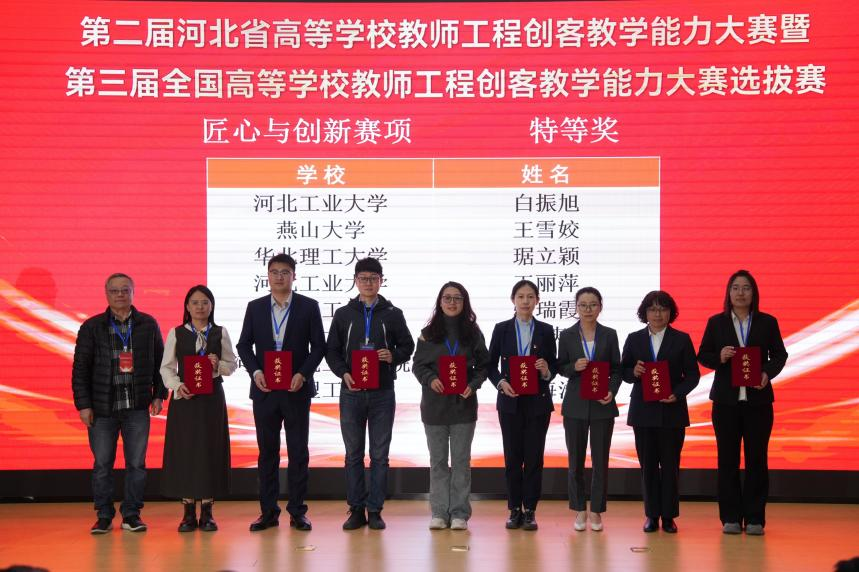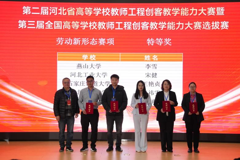 大赛赛程紧凑、角逐激烈,参赛教师们各展所长,在赛场中充分展现出锐意创新、勇于实践的探索精神,深耕教学、精益求精的育人初心。燕山大学参赛团队表现突出,共荣获特等奖3项、一等奖1项,二等奖2项,充分展现了学校在工程创客教学领域的扎实功底与育人实力。